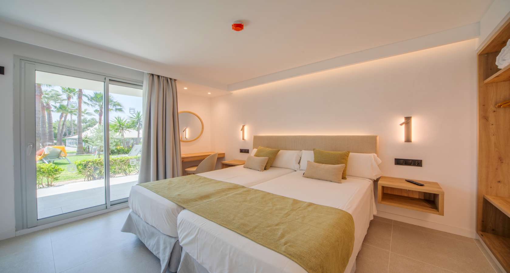 - 1 Schlafzimmer mit 2 Einzelbetten (90×200 cm) – direkter Zugang zum Balkon/Terrasse
