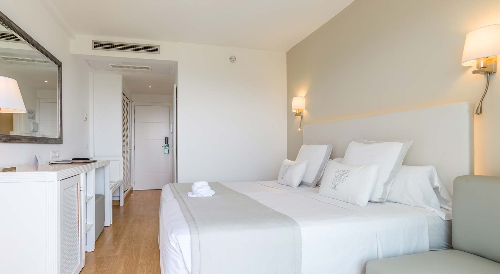 Die Zweibettzimmer zur Alleinbenutzung mit seitlichem Meerblick im Hotelgebäude, befinden sich in zwischen der 01 bis 03 Etage und sind perfek zugeschnitten für Alleinreisende die auf Komfort nicht verzichten möchten. Sie verfügen über einen Balkon/ Terrase, von welchem man den seitlichen Meerblick geniessen kann. Betten: 2 Einzelbetten (90x200 cm). Es kann kein Babybett zur Verfügung gestellt werden. Einzelzimmerbelegung ohne Babies.