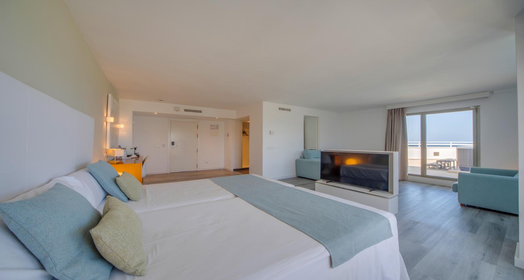 Spektakuläre Royal Junior Suite mit direktem Meerblick, 37 m² im Loft-Stil (Wohn- und Schlafzimmer teilen sich einen Raum), ideal für Erwachsene.