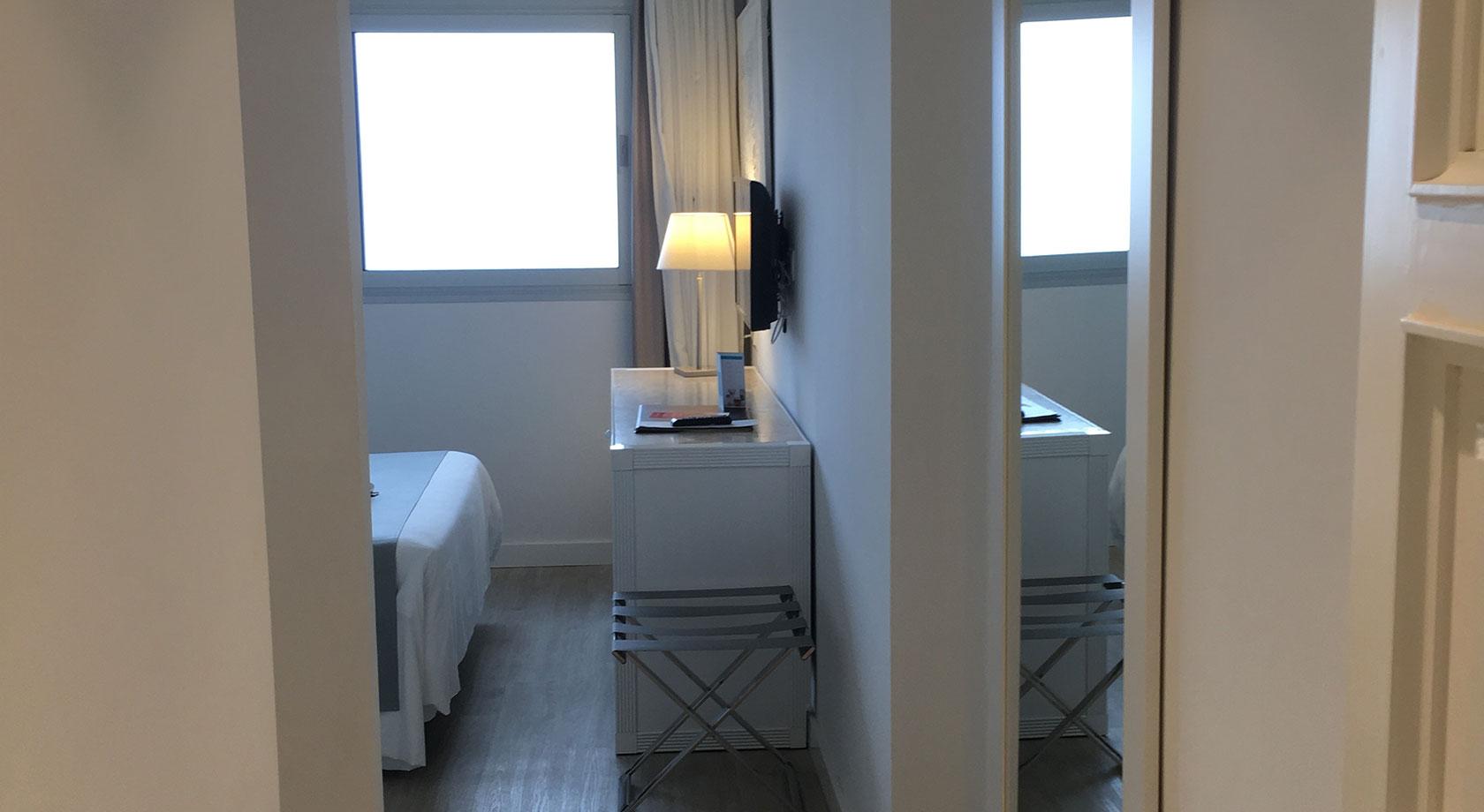 The Low Cost without balcony of the main building are the simplest room type of the Resort. These 17m2 sized rooms are an economic option for your holidays. They are located between the first and sixth floor and have a max. occupancy of 2 adults. The daylight entering through the window brightens the room (no balcony) and one bathroom with shower. Bed: 1 Bed (150x200 cm) or 2 single beds (90x200 cm).