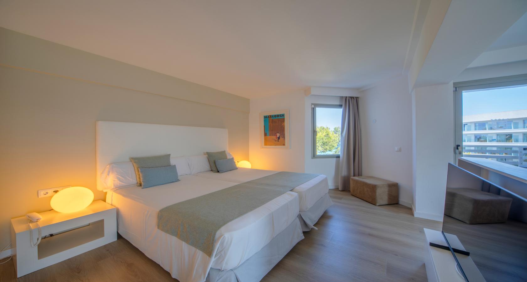 Our Junior Suite Superior side sea view with Jacuzzi offers 37 m² loft-style (living room and bedroom share one space), ideal for adults.